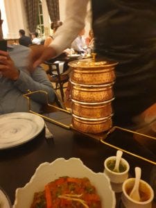 The Tiffin Room’s new look felt much brighter and more spacious than before, while making creative use of vintage stacked tiffin containers.